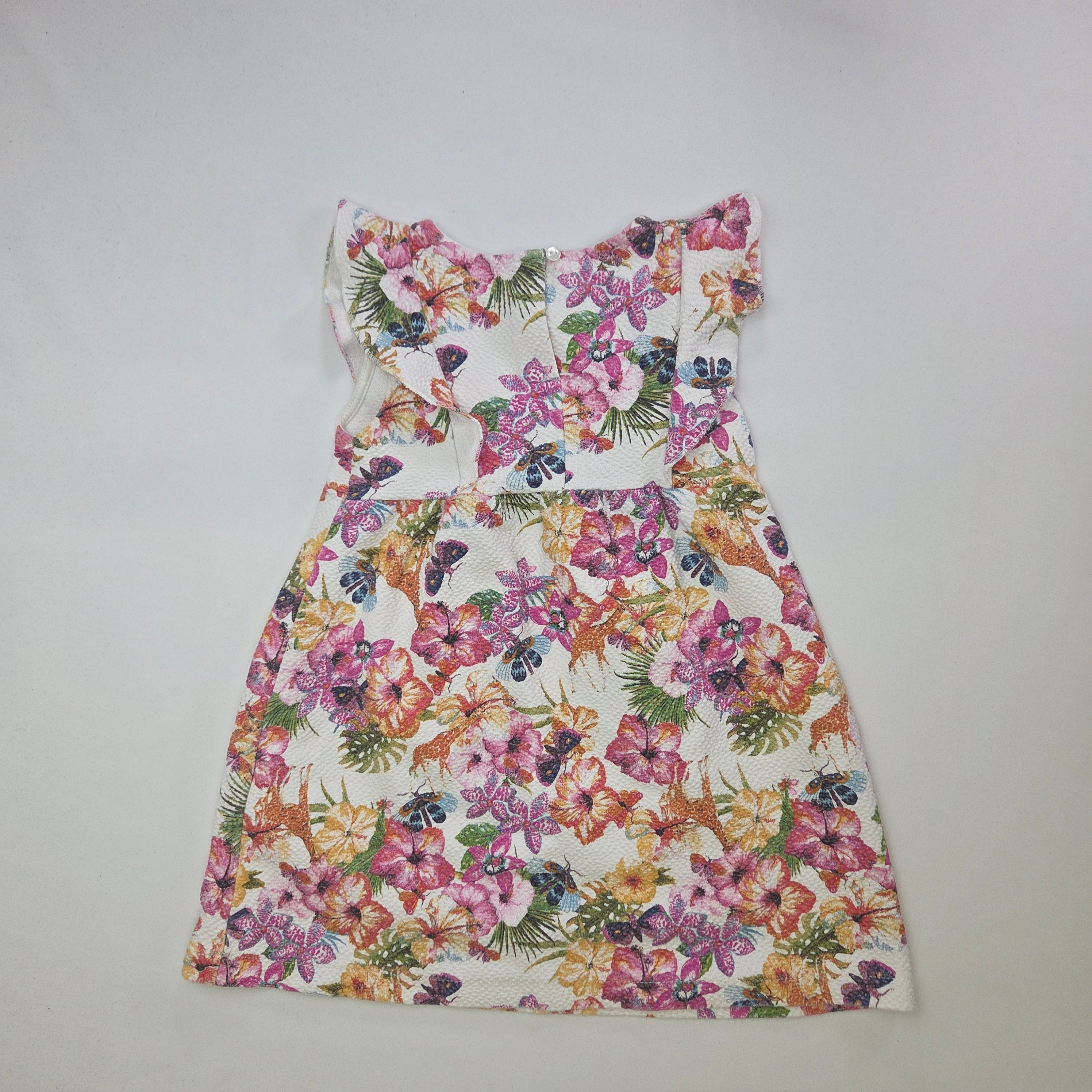 Questo adorabile vestito floreale è un vero e proprio sogno per le piccole amanti della natura! Realizzato in morbido cotone, presenta un vivace motivo di fiori e farfalle dai colori strabilianti. Le maniche a volant aggiungono un tocco chic, mentre il taglio ampio e comodo garantisce libertà nei movimenti. Perfetto per una giornata di sole, una festa di compleanno o un’avventura al parco, questo vestito usato si presenta in ottime condizioni, pronto per fare brillare il guardaroba della tua piccola! Un capo ideale per far risaltare l'allegria e la creatività!