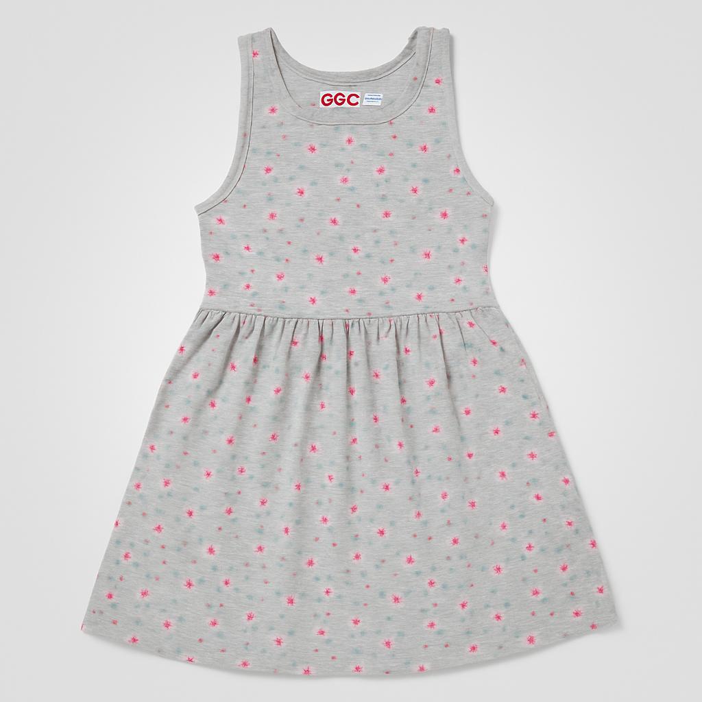 Questo adorabile abitino grigio di GGC è perfetto per le giornate estive! Caratterizzato da un delicato motivo di fiori colorati, porta un tocco di freschezza e allegria al guardaroba della tua piccola. Il design senza maniche e la gonna ampia offrono comfort e libertà di movimento, ideali per giochi e avventure. Nonostante sia usato, è in ottime condizioni e pronta per regalare sorrisi e momenti felici. Un capo versatile da abbinare a sandali o scarpe da ginnastica per un look chic e pratico!