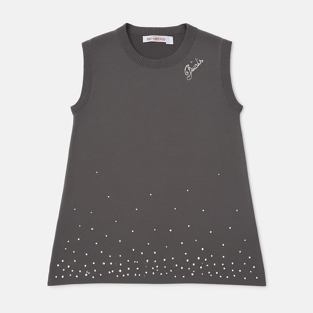 Questa dolce canotta senza maniche, caratterizzata da un sofisticato grigio, è il perfetto alleato per gli outfit estivi delle piccole! Decorata con un delicato motivo di micro-borchie argentate sul fondo, aggiunge un tocco di brillantezza e stile. La vestibilità comoda la rende ideale per ogni occasione, dai giochi in giardino a una giornata al parco. Nonostante sia un capo usato, conserva il suo fascino e la sua eleganza, perfetta per le piccole fashioniste che amano brillare!