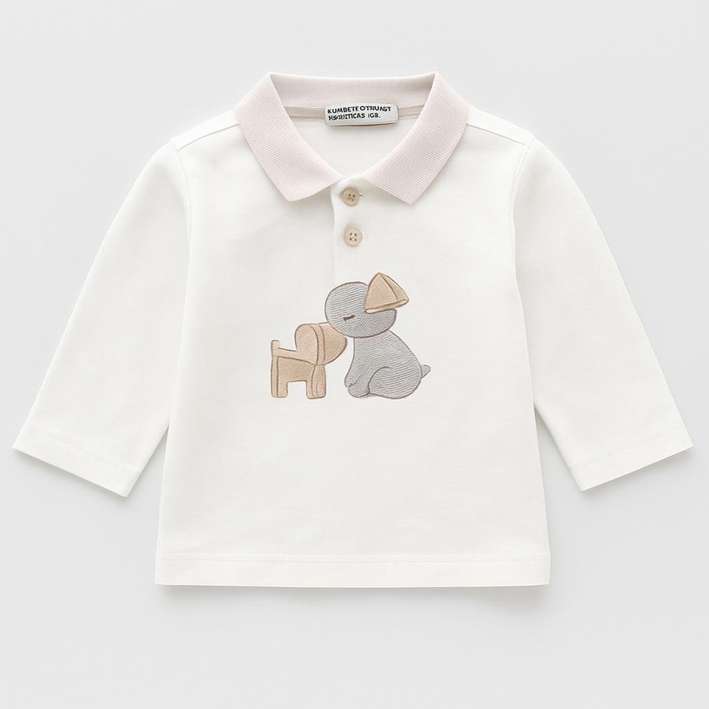 Questo adorabile golfino a maniche lunghe è perfetto per le giornate fresche! Realizzato in morbido cotone bianco, presenta un colletto elegante e uno charmoso ricamo di un tenero cucciolo e un simpatico elefantino sul davanti. La vestibilità comoda lo rende ideale per ogni occasione, dall'asilo ai pomeriggi trascorsi a giocare. Nonostante sia un pezzo usato, si trova in ottime condizioni e porterà sicuramente un sorriso sul volto della tua piccola! Un capo versatile che non può mancare nel suo guardaroba!