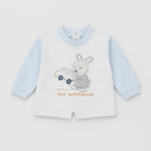 Questo adorabile pullover per neonati è perfetto per i cuccioli che amano la comodità e il divertimento! Realizzato in morbido cotone, presenta una dolce fantasia a righe azzurre e un simpatico coniglietto che gioca con un giocattolo. Le maniche lunghe e il collo a giro garantiscono calore e comfort durante le giornate fresche. Nonostante sia un capo usato, è in ottime condizioni e pronto per essere indossato da un piccolo esploratore. Un'aggiunta giocosa e affettuosa al guardaroba dei tuoi piccoli!