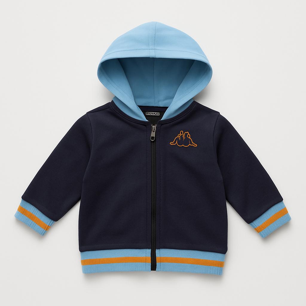 Questa adorabile felpa Kappa è l'aggiunta perfetta al guardaroba del tuo bambino! Realizzata con materiali morbidi, offre comfort e calore nelle giornate più fresche. Il design bi-colore, con una base blu scuro e un cappuccio blu chiaro, è trendy e accattivante. Le righe arancioni e blu sui polsini e sul fondo donano un tocco vivace. La chiusura con zip e il pratico cappuccio la rendono ideale per le avventure quotidiane. Anche se usata, si presenta in ottime condizioni, pronta per accompagnare il tuo piccolo in nuove esplorazioni!