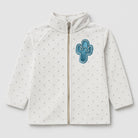 Questo caldo e morbido felpino bianco è perfetto per affrontare le giornate più fresche! Decorato con deliziosi pois grigi e un simpatico cactus ricamato in turchese, aggiunge un tocco di originalità al look del tuo bambino. Con la zip e il colletto alto, assicura comfort e praticità per ogni avventura. Ideale per il parco o una passeggiata, questo capo usato è in ottime condizioni, pronto per essere indossato da chi ama divertirsi con stile!