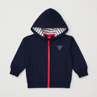 Questa giacca a zip di marca Energy è perfetta per le piccole avventure quotidiane! Realizzata in morbido tessuto blu navy, presenta una comoda capienza e una fodera a righe bianche e blu, che rende ogni outfit unico e divertente. La chiusura frontale con zip colorata aggiunge un tocco di vivacità, mentre il cappuccio protegge dalle fresche giornate. Ideale per la scuola o il tempo libero, questo capo usato è in ottime condizioni e sottolinea il comfort e lo stile. Un imprescindibile per ogni piccolo esploratore!