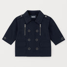 Questo elegante giubbino navy di marca potrebbe diventare il capo preferito del tuo piccolo! Realizzato in un tessuto resistente e leggero, è perfetto per le giornate fresche. Il classico stile doppiopetto con bottoni metallici e dettagli con zip aggiunge un tocco di raffinatezza. Le maniche lunghe con polsini regolabili garantiscono una vestibilità comoda e adatta a qualsiasi occasione, dalle passeggiate al parco agli eventi speciali. Nonostante sia un capo usato, si presenta in ottime condizioni, pronto per accompagnare il tuo bambino in ogni avventura con stile! Un outfit chic e pratico per un piccolo stiloso!