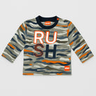 Stupenda e avventurosa, questa maglietta a maniche lunghe di TUC TUC è perfetta per i piccoli esploratori! Con un allegro motivo camouflage in tonalità grigie, verdi e arancioni, cattura subito l'attenzione. La scritta "RUSH" in evidenza aggiunge un tocco audace e dinamico. Il tessuto morbido garantisce comfort durante ogni avventura. Nonostante sia un capo usato, si presenta in ottime condizioni, pronto a diventare il preferito del tuo bambino. Un must-have per le giornate di gioco e scoperta!