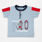 Questa simpatica t-shirt di marca GARY è perfetta per i piccoli amanti delle avventure! Realizzata in morbido cotone, presenta un fresco colore azzurro, con dettagli rossi sulle maniche che aggiungono un tocco vivace. La grafica divertente con il testo "EVOLUTION of the BOARDING" e un adorabile personaggio rende questo capo ideale per esprimere la personalità giocosa del tuo bambino. Con il suo taglio comodo e il colletto a polo, è perfetta per il gioco all'aperto o per una giornata in famiglia. Nonostante sia usata, è in ottime condizioni e pronta a diventare un favorito nel guardaroba!
