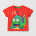 Fai ruggire il guardaroba del tuo piccolo avventuriero con questa divertente t-shirt rossa! Realizzata in morbido cotone, presenta un vivace design di un drago sorridente che dice "ROAR!", perfetto per stimolare la fantasia. Le maniche corte e il taglio comodo la rendono ideale per le giornate di gioco e svago. Nonostante sia un capo usato, si presenta in buone condizioni, pronto a diventare il favorito del tuo bambino. Un must per i giovani esploratori che amano divertirsi con stile!