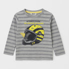 Questa maglietta a maniche lunghe di NYKY è perfetta per i piccoli esploratori! Con la sua base grigia a righe, cattura subito l'attenzione grazie al vivace design del casco da motociclista colorato di giallo e nero. Realizzata in morbido cotone, garantisce comfort e libertà di movimento, ideale per avventure quotidiane. Anche se è un capo pre-amato, si presenta in ottime condizioni, pronto per nuove scoperte. Un'aggiunta fantastica per il guardaroba dei tuoi bimbi, che non rinunciano mai al divertimento e allo stile!