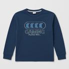 Preparati a far brillare il guardaroba del tuo piccolo gamer con questa originale t-shirt a maniche lunghe! Realizzata in un morbido cotone blu notte, questa maglietta presenta una divertente grafica al centro che recita "GAMING PLEASE WAIT...". Perfetta per le lunghe sessioni di gioco o semplicemente per un look casual e trendy, è ideale per le fresche giornate di primavera e autunno. Nonostante sia un capo usato, si presenta in ottime condizioni, ancora pronto a offrire comfort e stile. Un must per ogni giovane appassionato di videogiochi!