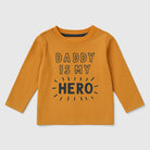 Questa adorabile t-shirt arancione con maniche lunghe è un vero inno all'amore per i papà! Con la scritta “DADDY IS MY HERO” in belle lettere grafiche, il suo messaggio dolce e giocoso fa brillare il cuore. Realizzata in morbido cotone, offre comfort e libertà di movimento per ogni avventura quotidiana. Perfetta per le fresche giornate primaverili e invernali, si abbina facilmente a jeans o pantaloni. Nonostante sia un capo usato, si presenta in ottime condizioni, pronto a far sentire ogni bambino un piccolo eroe!