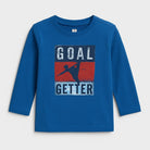 Questa simpatica maglietta a maniche lunghe in blu brillante è perfetta per i piccoli sognatori! Con un vivace stile "Goal Getter" stampato sul davanti, ispira avventure e giochi all'aperto. Realizzata in morbido cotone, offre comfort e libertà di movimento. Ideale per le giornate fresche o per strati alla moda, è un capo usato ma in buone condizioni, pronto per accompagnare ogni piccola impresa. Un'aggiunta giocosa e trendy al guardaroba dei bambini!