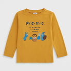 Questa simpatica maglietta a maniche lunghe in un caldo giallo senape è perfetta per i piccoli amanti della natura! Decorata con un adorabile disegno che celebra i picnic, presenta una scritta giocosa “PIC-NIC IS ALWAYS A GOOD IDEA!!” e un divertente gruppo di simpatici animaletti. La morbida tela assicura comfort durante le avventure quotidiane, rendendola un capo versatile per tutti i giorni. Anche se è un articolo usato, si trova in ottime condizioni, pronto a regalare sorrisi e momenti spensierati! Un'aggiunta vivace e divertente al guardaroba dei tuoi bambini!