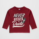 Questo adorabile maglioncino a maniche lunghe in un caldo color bordeaux è perfetto per i piccoli ribelli che amano esprimere la loro personalità! Decorato con la simpatica scritta “NEVER GROW UP, Dude”, questo capo trasmette un messaggio di gioco e avventura. Realizzato in un morbido cotone, offre comfort e calore per le giornate più fresche. La vestibilità comoda lo rende ideale per l'uso quotidiano, dalle avventure nel parco ai pomeriggi in casa. Nonostante sia un capo usato, si presenta in ottime condizioni, pronto per accompagnare il tuo piccolo in nuove emozionanti esperienze!