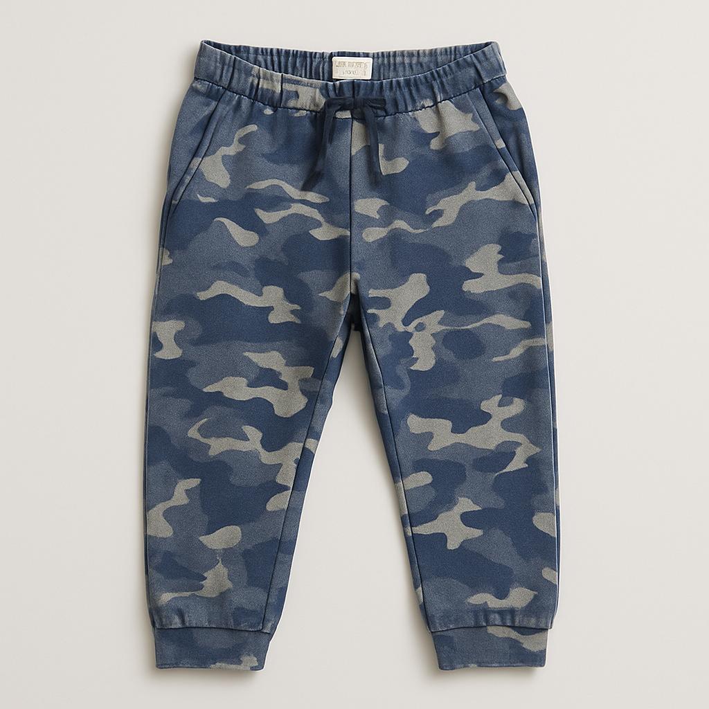 Questi pantaloni casual in stile mimetico sono perfetti per i piccoli esploratori! Realizzati in morbido cotone, offrono comfort e libertà di movimento, ideali per mille avventure. La tonalità blu si abbina facilmente a diverse magliette, mentre l’elastico in vita con coulisse assicura una vestibilità personalizzata. Nonostante siano usati, sono in buone condizioni e pronti per accompagnare ogni gioco e attività all’aperto. Con questi pantaloni, ogni giorno sarà un'avventura di stile!
