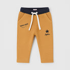 Questi pantaloni comodi e stilosi per bambini sono perfetti per ogni avventura! Realizzati in morbido cotone a righe, presentano un vivace colore senape che si abbina facilmente a molte magliette. La fascia in vita regolabile e le tasche frontali aggiungono praticità e comfort, mentre il dettaglio ricamato sul lato conferisce un tocco di personalità. Ideali per giocare all'aperto o per un pomeriggio di relax a casa, questi pantaloni sono un must-have per ogni piccolo esploratore! Nonostante siano un capo usato, sono in ottime condizioni e pronti per accompagnare nuove scoperte.