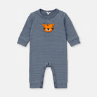 Questo adorabile pagliaccetto presenta una deliziosa fantasia a righe blu e bianche che ricorda il mare! Dotato di maniche lunghe, è perfetto per tenere al caldo i più piccoli. Sul petto, un tenero viso di tigre aggiunge un tocco di simpatia e divertimento. I bottoni sul davanti rendono facile il cambio, mentre il tessuto morbido garantisce il massimo comfort durante le avventure quotidiane. Anche se usato, si presenta in ottime condizioni, ideale per i piccoli esploratori che amano giocare con stile!