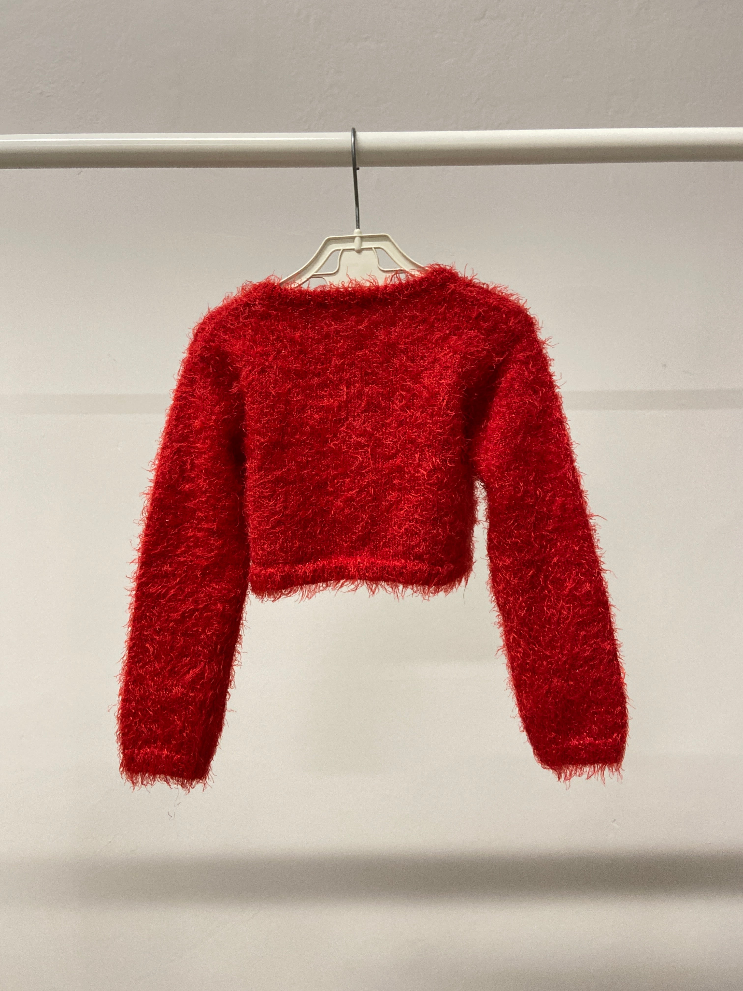 Questo adorabile maglione rosso di pelliccia sintetica è il capo perfetto per aggiungere un tocco di calore e stile al guardaroba dei più piccoli! Il suo tessuto morbido e fluffy è ideale per coccolare la pelle durante le giornate fresche, mentre il vivace colore rosso porta un'esplosione di allegria. Con un taglio cropped, si abbina magnificamente a top più lunghi o a vestiti, rendendolo versatile per ogni occasione. Anche se è un pezzo usato, si trova in ottime condizioni e saprà rendere ogni look unico e alla moda!