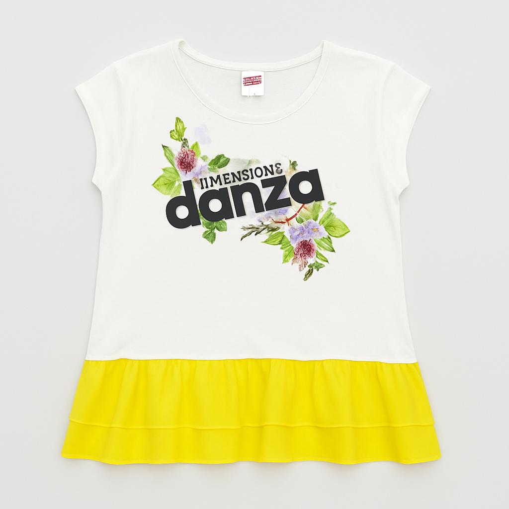 Questa adorabile maglietta bianca è perfetta per le piccole amanti della danza! Con uno splendido design floreale che circonda la scritta "dimensione danza", aggiunge un tocco di vivacità al look. La parte inferiore in giallo fluo in gotta rende il modello ancora più giocoso e trendy, ideale per ballare, giocare o semplicemente divertirsi. Realizzata in morbido cotone, offre comfort e freschezza durante le giornate estive. Pur essendo un capo usato, si presenta in ottime condizioni e sarà certamente un favorito nel guardaroba!
