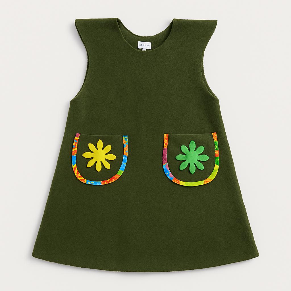 Questo adorabile abito green vintage è perfetto per rendere unica la tua piccola! Realizzato in un morbido e caldo tessuto, presenta un taglio versatile che si adatta facilmente a qualsiasi occasione. Le due simpatiche tasche, decorate con fiori colorati, aggiungono un tocco di allegria e fantasia, rendendolo ideale per la creatività dei bambini. Nonostante sia un capo usato, si presenta in ottime condizioni ed è perfetto per le giornate di gioco o per un look casual-chic. Un'ottima scelta per le piccole fashioniste!