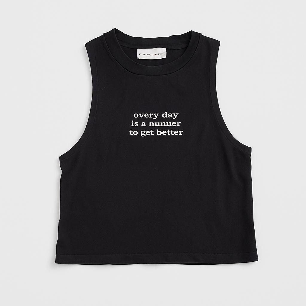Scopri questa adorabile canotta nera, un capo facile e versatile per il guardaroba del tuo piccolo! Realizzata in morbido cotone, è perfetta per affrontare ogni avventura con stile. La frase motivazionale "every day is a chance to get better" stampata in bianco sul fronte porterà un tocco incoraggiante a ogni outfit. Con il suo design senza maniche e il taglio moderno, è ideale per le giornate calde o per strati nel periodo fresco. Nonostante sia usata, si presenta in ottime condizioni, pronta a far brillare il look dei giovani esploratori! Un'opzione trendy e comoda, perfetta per esprimere la propria personalità.