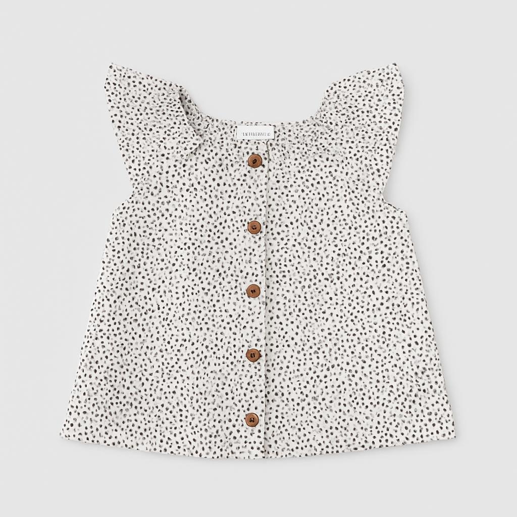 Questa deliziosa canotta a pois è il capo perfetto per le piccole trendy! Realizzata in un tessuto leggero e fresco, presenta spalline a volant che aggiungono un tocco di dolcezza. I bottoni frontali in legno donano un dettaglio elegante e giocoso. Questo top è ideale per le giornate estive, perfetto da abbinare a un paio di shorts o una gonna. Nonostante sia un pezzo usato, si presenta in ottime condizioni e pronto a far brillare il guardaroba della tua piccola! Un'ottima scelta per ogni occasione!