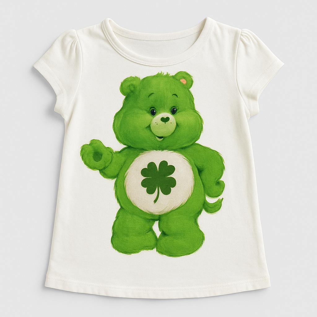 Questa adorabile t-shirt presenta un tenero orsetto verde con un grande quadrifoglio sul pancino, perfetta per le piccole amanti della magia! Realizzata in cotone morbido, garantisce comfort e freschezza durante le giornate di gioco. Le maniche corte e il taglio leggermente aderente la rendono pratica e alla moda. Nonostante sia un capo usato, si trova in ottime condizioni, pronto per essere indossato da nuove piccole avventuriere. Un vero pezzo da collezione per un look spumeggiante e divertente!