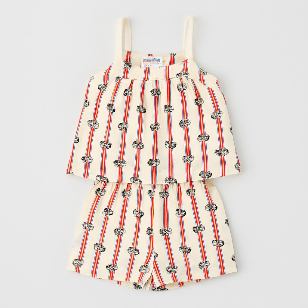 Questo adorabile completino per bambine è perfetto per le calde giornate estive! Realizzato in morbido cotone, presenta una blusa a spalline e dei pantaloni corti, entrambi decorati con una vivace stampa a righe rosa e nera. Il design giocoso e fresco lo rende ideale per le avventure all'aperto e le giornate in spiaggia. Nonostante sia un capo precedentemente amato, si presenta in buone condizioni, pronto a regalare comfort e stile alla tua piccola. Un must-have per un guardaroba estivo pieno di divertimento!