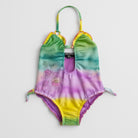 Questo fantastico costume da bagno è perfetto per le piccole esploratrici dell'estate! Con un vivace design tie-dye che sfuma dal verde al viola, è adornato da dolci fiori colorati, trasmettendo un'energia fresca e giocosa. Le spalline regolabili e il taglio comodo assicurano libertà di movimento durante le avventure in piscina o al mare. Nonostante sia un capo usato, si presenta in ottime condizioni ed è pronto per divertirsi sotto il sole. Un'aggiunta colorata e trendy al guardaroba estivo delle tue piccole!