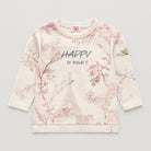 Questa adorabile maglietta maniche lunghe porta un messaggio di gioia con la scritta “HAPPY to Travel!!” che si staglia su uno sfondo delicato. Decorata con dolci fiori in tonalità pastello, è perfetta per le piccole sognatrici pronte a esplorare il mondo. Realizzata in un morbido cotone, offre comfort e leggerezza. Le maniche lunghe la rendono ideale per le fresche giornate primaverili. Nonostante sia un capo usato, mantiene ottime condizioni ed è pronta a regalare sorrisi e avventure a chi la indossa!