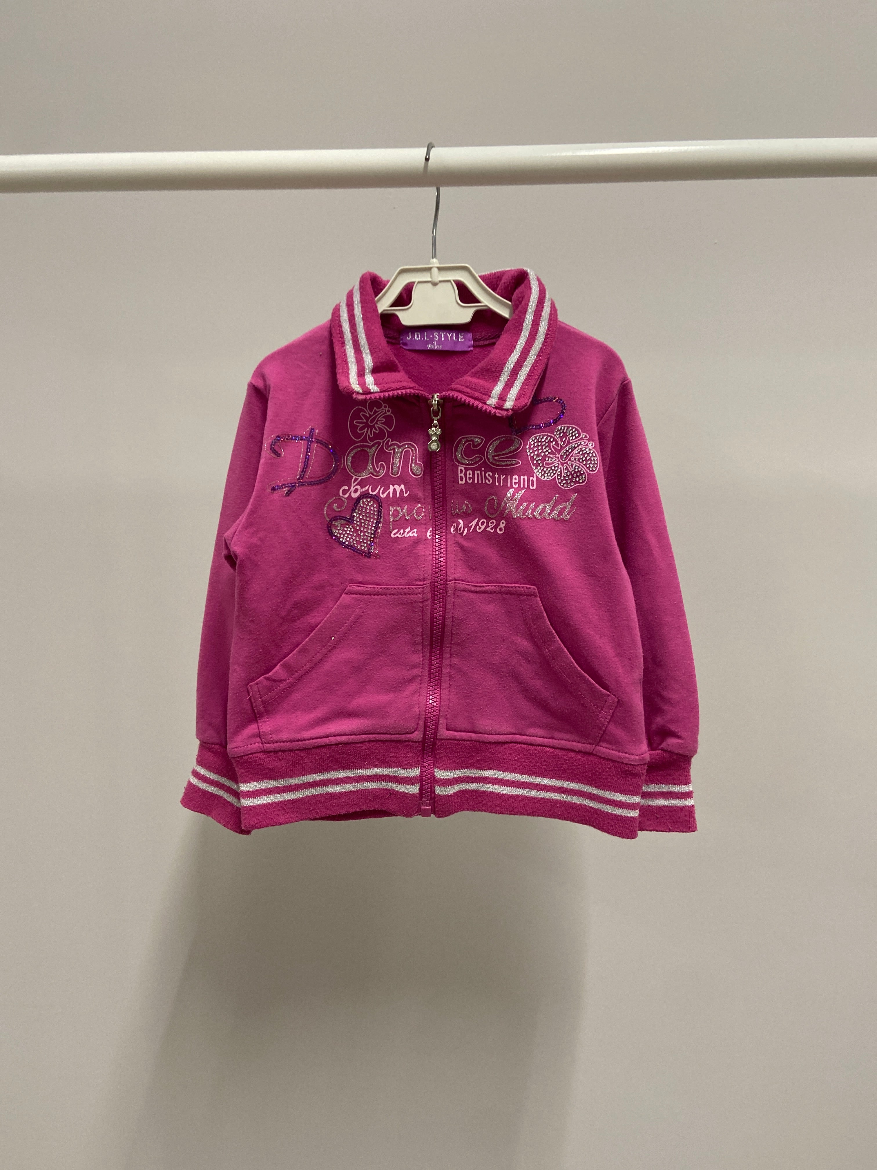 Questa giacca rosa di marca “Benetton” è un must per le giovani fashioniste! Realizzata in morbido cotone, offre massimo comfort e calore. Il design vivace è arricchito da scritte glitterate che brillano, perfette per esprimere la personalità giocosa della tua bimba. Le maniche lunghe con polsini a righe aggiungono un tocco di stile, mentre la chiusura con zip rende facile indossarla. Ideale per le uscite fresche o le giornate di gioco, questa giacca usata è in ottime condizioni e pronta a regalare nuove avventure!