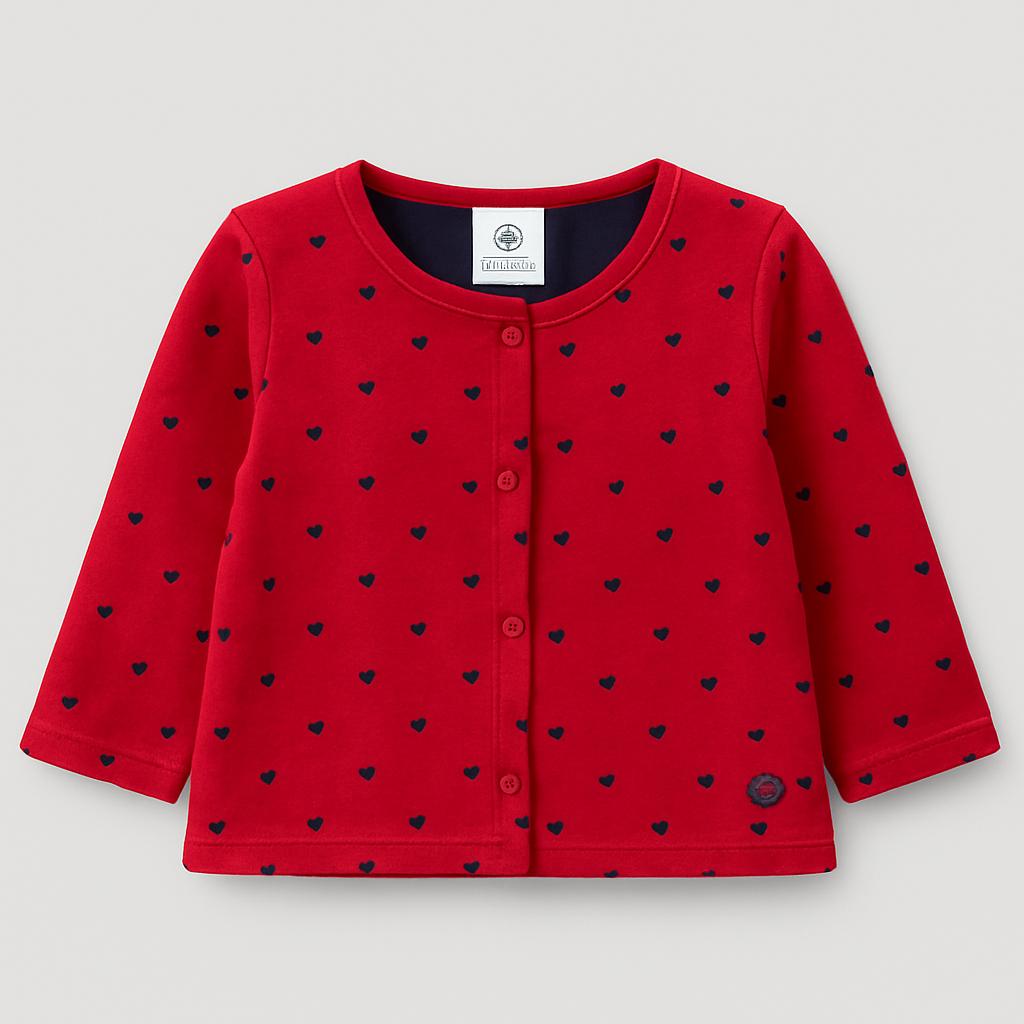 Questo adorabile cardigan rosso è un must-have per le piccole fashioniste! Realizzato in morbido tessuto, è decorato con graziosi cuoricini blu che aggiungono un tocco dolce e giocoso. La chiusura frontale a bottoni e le maniche lunghe lo rendono perfetto per le fresche giornate autunnali. Comodo e pratico, si abbina facilmente a jeans o gonne, garantendo un look trendy e accogliente. Nonostante sia un capo usato, si presenta in ottime condizioni, ideale per aggiungere colore e stile al guardaroba della tua bambina!