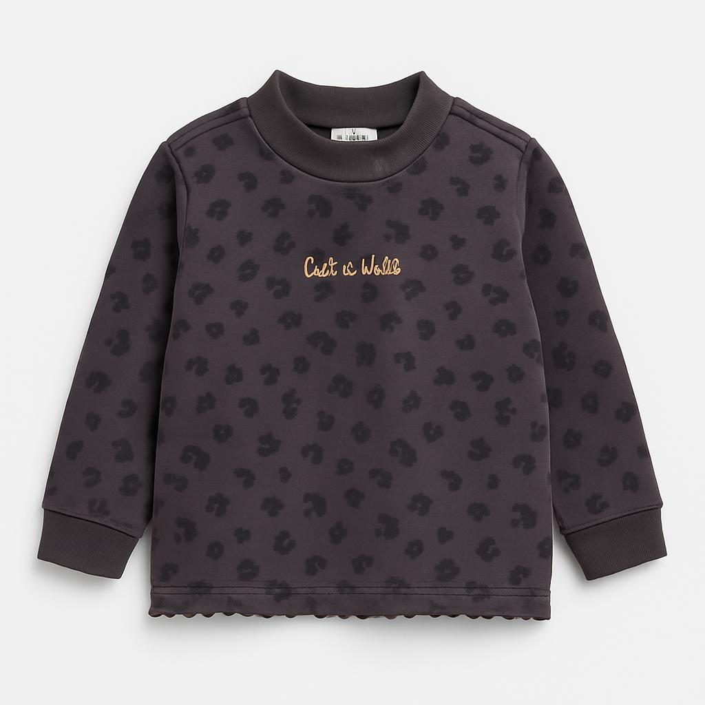Preparati a far brillare il guardaroba della tua piccola con questo adorabile felpa firmata "C'est La Vie"! Realizzata in morbido cotone, presenta un grazioso motivo floreale su sfondo grigio scuro. Il collo alto e le maniche lunghe la rendono perfetta per le fresche giornate invernali. Un delicato bordo arricciato aggiunge un tocco di originalità, mentre il motto "C'est La Vie" sul davanti infonde una nota vivace e giocosa. Leggermente usata, ma in ottime condizioni, è l'ideale per le piccole che amano combinare comfort e stile!