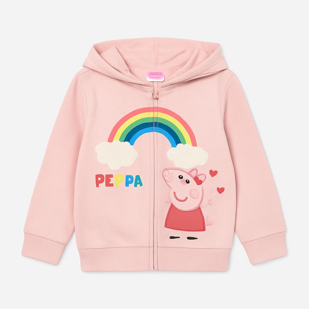 Questa adorabile felpa di Peppa Pig è perfetta per tutte le piccole fan della simpatica maialina! In un dolce colore rosa, presenta una pratica zip e un accattivante design con l'arcobaleno e Peppa stessa che la rendono irresistibile. Le soffici maniche lunghe e il cappuccio offrono comfort e calore, ideali per le giornate più fresche. Nonostante sia un capo usato, si presenta in ottime condizioni, pronto a rendere ogni avventura ancora più speciale! Un'aggiunta giocosa e versatile per il guardaroba della tua bimba!