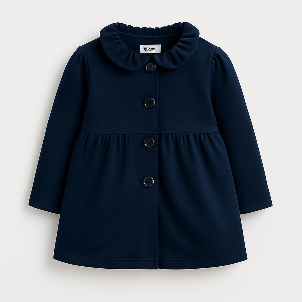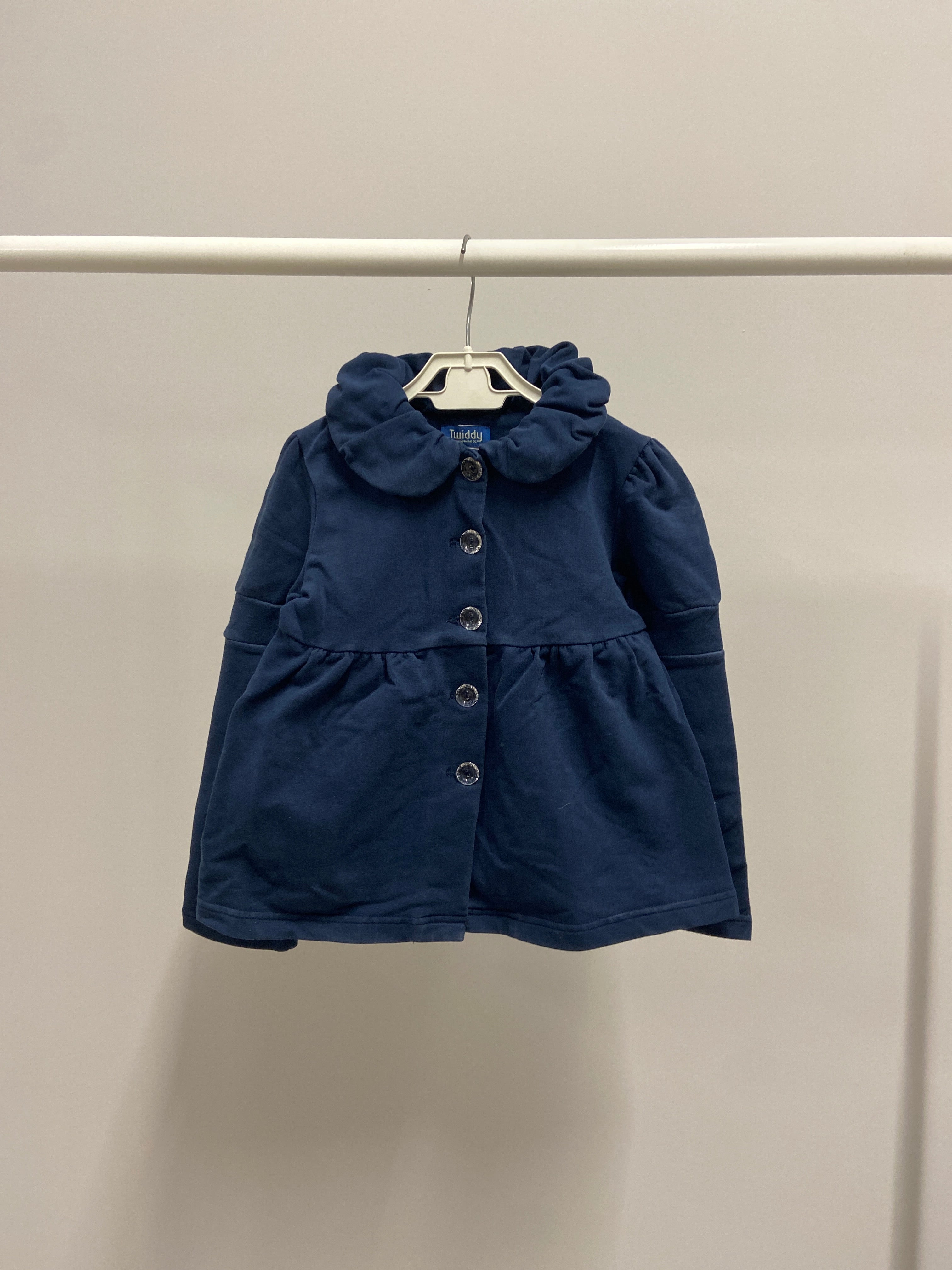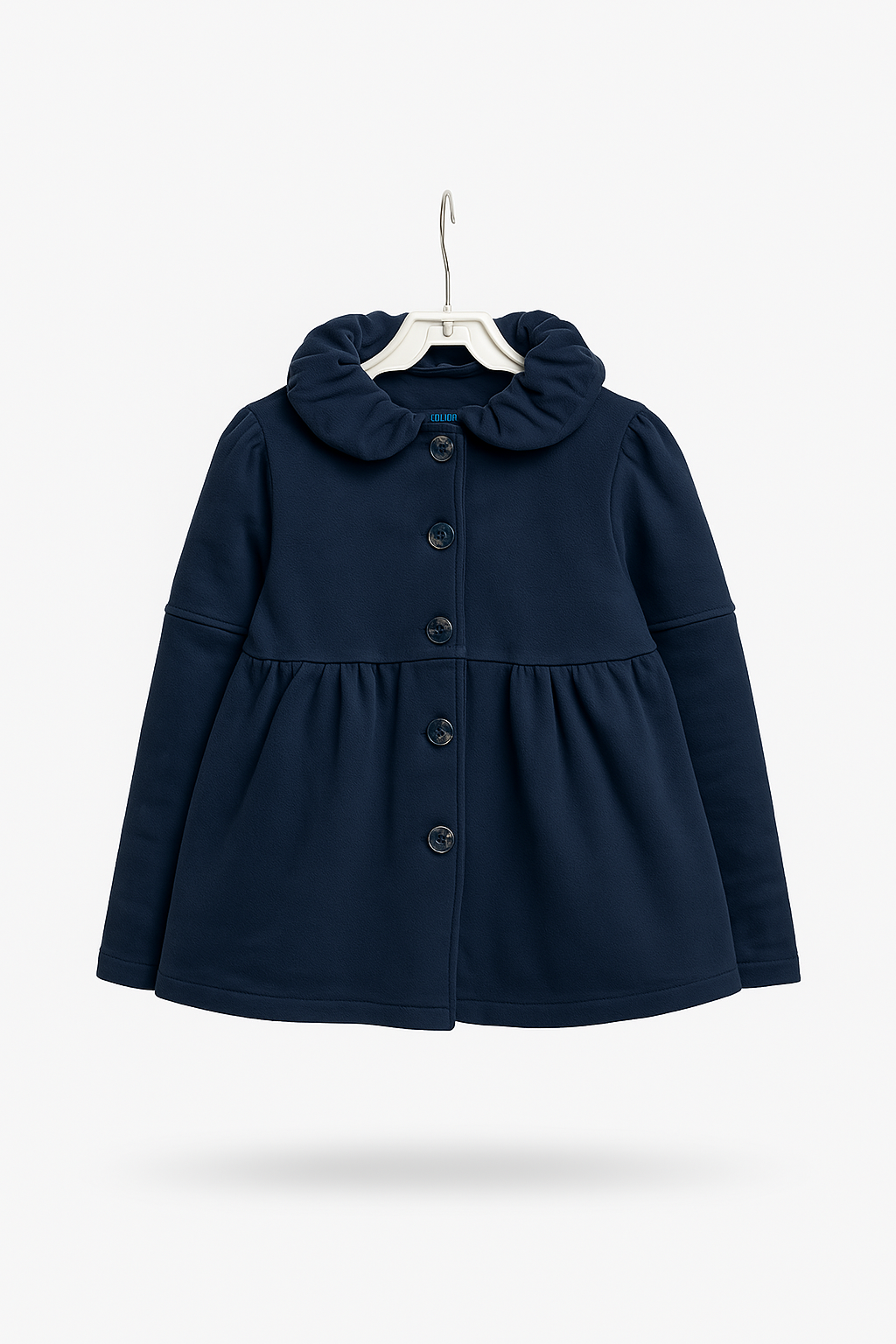 Questo incantevole cappottino blu navy è perfetto per le piccole principesse in cerca di stile e comfort! Realizzato in morbido materiale, presenta un elegante colletto arricciato e una chiusura con bottoni che aggiunge un tocco di classe. Il taglio svasato consente libertà di movimento, rendendolo ideale per giocare e divertirsi all'aperto. Perfetto per le giornate fresche, questo capo usato è in ottime condizioni e pronto a diventare il preferito della stagione. Aggiungi un po' di charme al guardaroba della tua bimba!