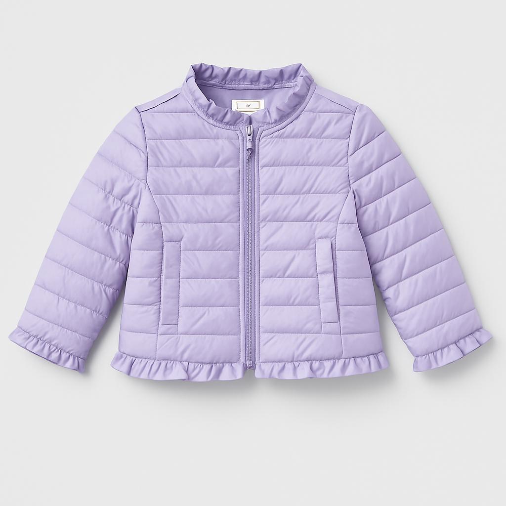 Questa adorabile giacca imbottita lilla è il perfetto abbinamento di stile e comfort per le giornate più fresche! Caratterizzata da un design elegante con una delicata rifinitura arricciata sulle maniche e sulla parte inferiore, aggiunge un tocco di dolcezza al look della tua piccola. La chiusura con zip rende facile indossarla, mentre il calore della sua imbottitura garantisce praticità e protezione. Nonostante sia un capo usato, si trova in ottime condizioni e farà sentire la tua bambina chic e coccolata in ogni occasione! Un must-have per le piccole esploratrici!