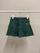 Questa adorabile gonna corta in un elegante verde bosco è perfetta per le piccole amanti della moda! Realizzata in cotone resistente, presenta delle pieghe che aggiungono un tocco di movimento e grazia. Sul lato, è impreziosita da un simpatico dettaglio decorativo che la rende ancora più speciale. Comoda e versatile, è ideale per giochi al parco o per un’uscita con amici. Nonostante sia usata, si presenta in ottime condizioni, pronta per accompagnare la tua bambina in nuove avventure. Un capo che unisce stile e praticità!