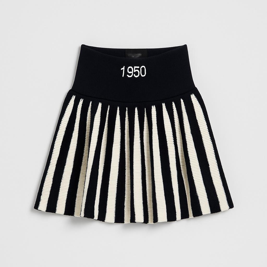 Questo adorabile gonnoncina a righe bianche e nere è un'aggiunta irresistibile al guardaroba della tua bambina! Realizzata con una morbida maglia, la gonna presenta un design a pieghe che aggiunge movimento e freschezza a ogni passo. La scritta "1950" sul bordo conferisce un tocco vintage e stiloso. Perfetta per le giornate di sole, può essere abbinata a una semplice t-shirt o a un top chic per un look da vera fashionista. Nonostante sia un capo usato, è in ottime condizioni e pronta per regalare sorrisi e avventure!