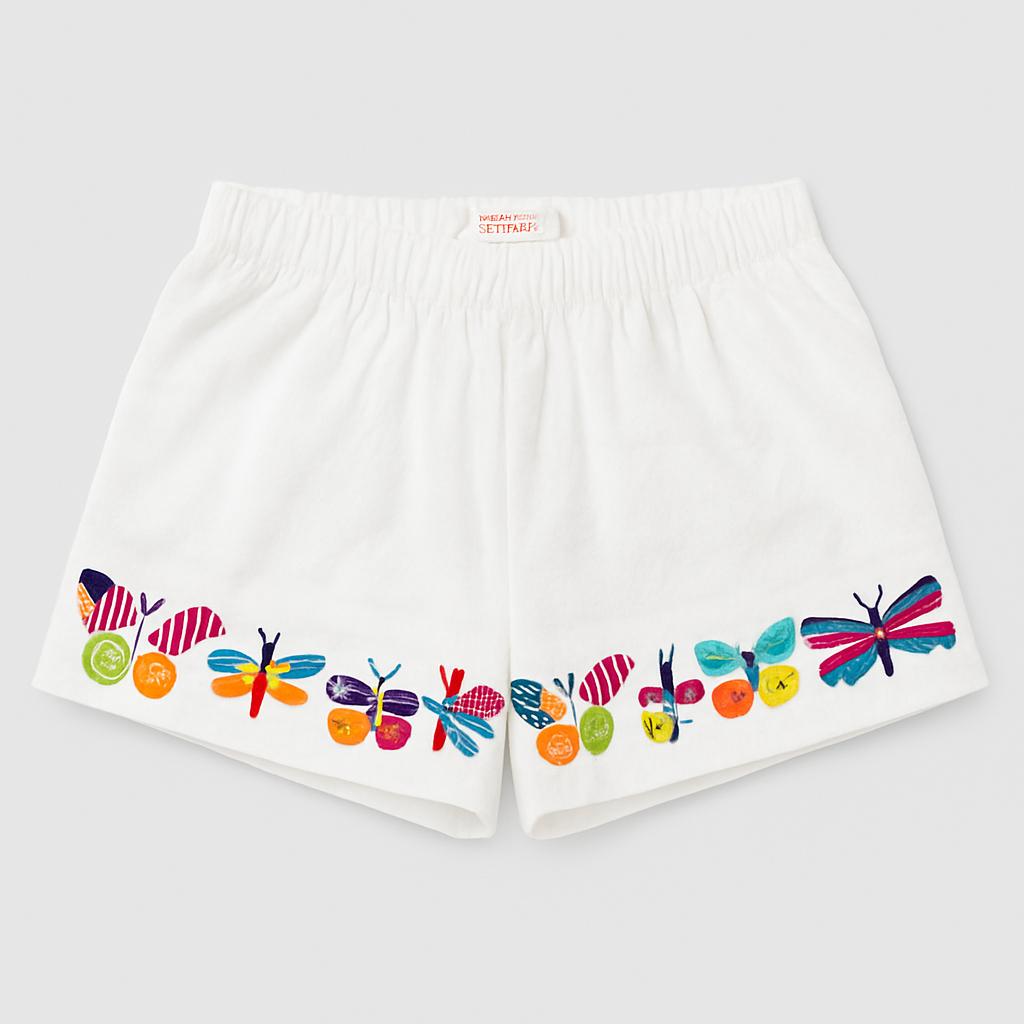 Questi deliziosi pantaloni corti bianchi sono il tocco perfetto per il guardaroba estivo della tua piccola! Caratterizzati da un cinturino elasticizzato, offrono comodità e libertà di movimento. La raffinata fascia colorata lungo l'orlo, decorata con vivaci farfalle e fiori, aggiunge un tocco di magia e allegria a ogni outfit. Ideali per le calde giornate di sole e per momenti di gioco spensierati, questi pantaloni corti usati si presentano in ottime condizioni. Un must per le piccole stiliste che amano esprimere la propria creatività!