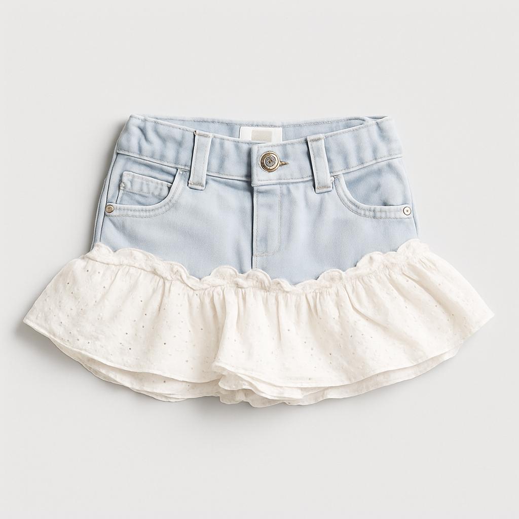 Questo adorabile gonnellino in denim chiaro è perfetto per le piccole stiliste! Caratterizzato da un design fresco e giocoso, presenta una voluminosa balza di pizzo bianco che aggiunge un tocco romantico. La vita elastica garantisce una vestibilità comoda, ideale per correre e giocare. Anche se usato, è in ottime condizioni e pronto a diventare il preferito per le calde giornate estive. Abbinalo a una semplice t-shirt e delle scarpette per un look incantevole!