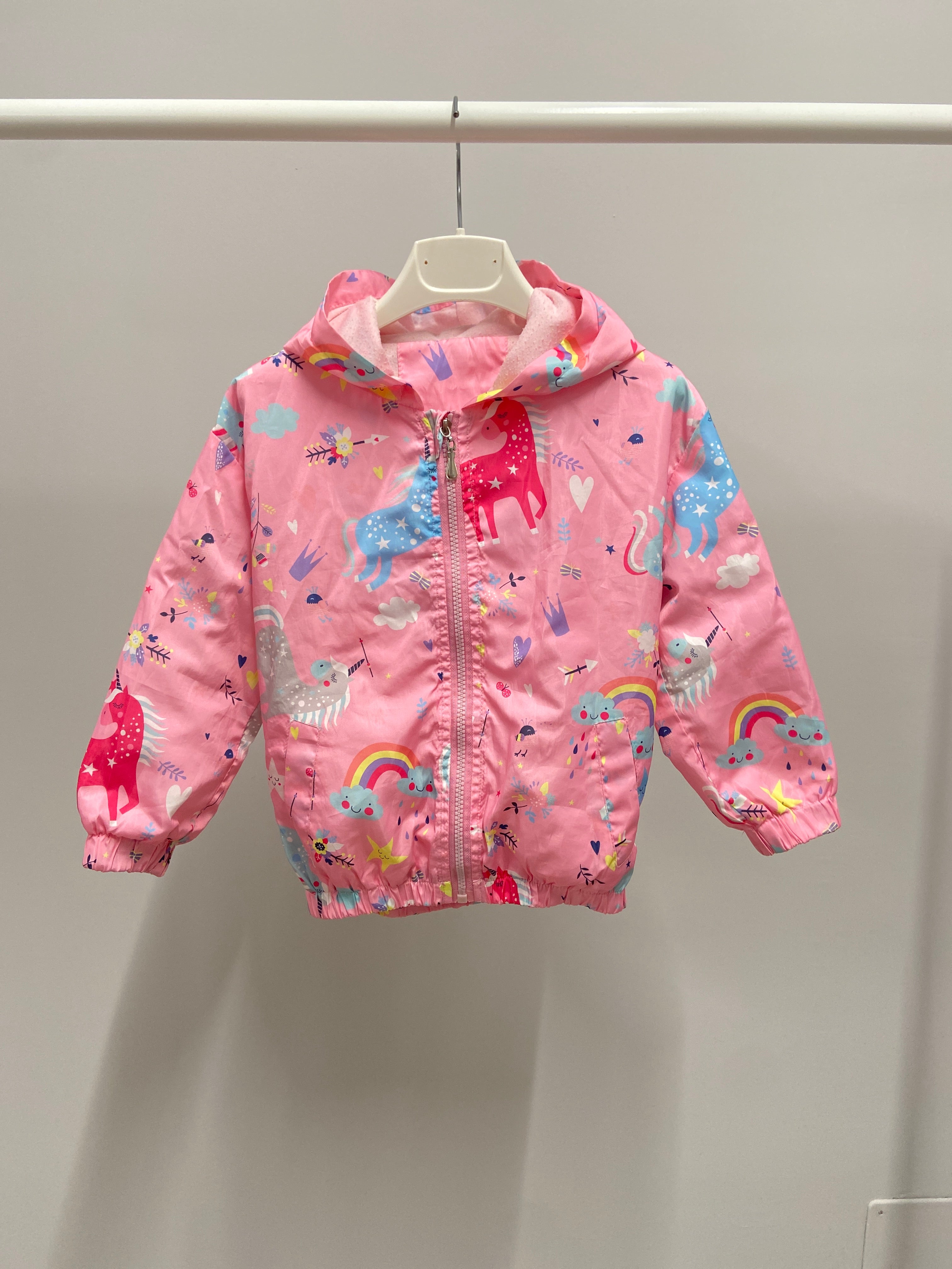 Questa incantevole giacca rosa con fantasia di unicorni è perfetta per le piccole sognatrici! Realizzata in un tessuto leggero e morbido, presenta una vivace stampa di colorati unicorni, arcobaleni e nuvolette che cattureranno l'immaginazione. La chiusura con zip e il cappuccio la rendono pratica e protettiva, ideale per le giornate fresche e ventose. Le maniche elastiche aggiungono comfort e praticità, permettendo a ogni piccola avventuriera di muoversi liberamente. Anche se usata, si presenta in ottime condizioni. Un capospalla da avere nel guardaroba per chi ama giocare e sognare!