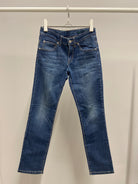 Questi jeans fascia blu scuro sono il compagno ideale per ogni piccola avventuriera! Realizzati in cotone morbido e resistente, offrono comfort e libertà di movimento per tutte le attività quotidiane. Il classico taglio dritto è perfetto per abbinamenti versatili, da una maglietta casual a una camicia elegante. Le tasche anteriori e posteriori non sono solo pratiche, ma anche perfette per nascondere piccoli tesori. Nonostante siano un capo usato, si presentano in ottime condizioni, pronti a brillare nel guardaroba! Un must-have per ogni stagione!