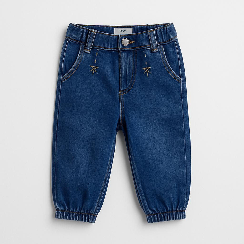 Questi adorabili jeans per bambini porteranno un tocco di stile nel guardaroba del tuo piccolo! Realizzati in denim di alta qualità, presentano un bellissimo lavaggio blu che si abbina facilmente a qualsiasi maglietta. I dettagli, come le cuciture decorative e le comode fasce elastiche alla caviglia, offrono un look alla moda e una vestibilità perfetta per ogni avventura. Nonostante siano un capo usato, sono in ottime condizioni e pronti a essere indossati! Ideali per i giochi all'aperto o per una passeggiata in famiglia, questi jeans sono un must-have per ogni piccolo trendsetter!