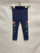 Questi leggings blu scuro sono un'aggiunta adorabile al guardaroba di ogni bambina! Realizzati in un morbido e comodo tessuto elastico, offrono una vestibilità perfetta per ogni avventura. I dettagli floreali ricamati sulle gambe, con rose delicate e foglie verdeggianti, aggiungono un tocco di eleganza e femminilità. Ideali per giorni di scuola, giochi all'aperto o momenti di relax, questi leggings uniscono stile e praticità. Nonostante siano un po' usati, si presentano in ottime condizioni, proni a contribuire al look della tua piccola fashionista!