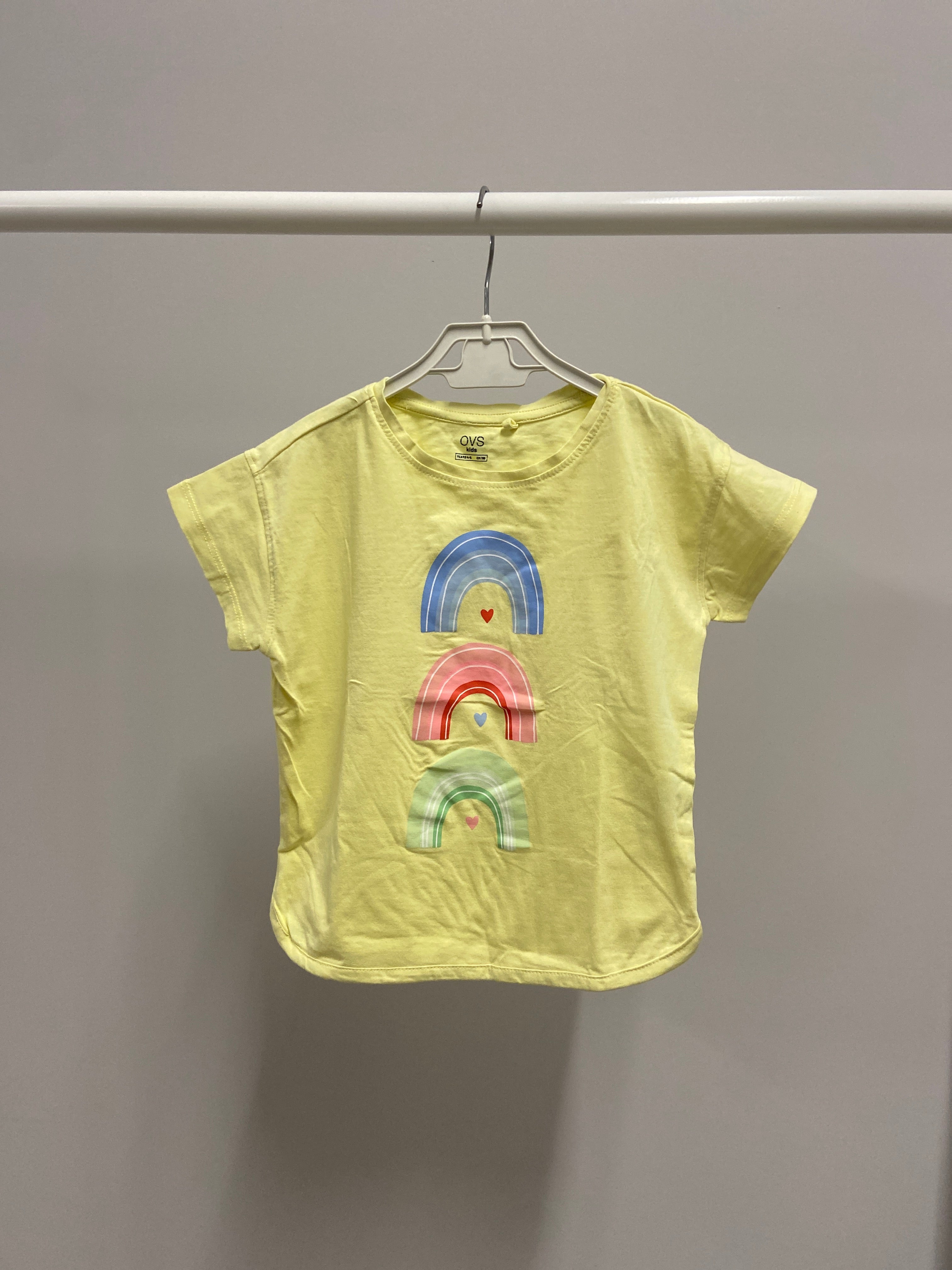 Questa adorabile t-shirt gialla è un vero must-have per ogni piccola sognatrice! Realizzata in un morbido cotone, presenta un design vivace con arcobaleni colorati sul fronte, aggiungendo un pizzico di magia al guardaroba. Le maniche corte e il taglio morbido garantiscono comfort per una giornata di giochi e avventure all’aperto. Nonostante sia un capo usato, si trova in ottime condizioni e pronta a far brillare il sorriso della tua bimba! Perfetta per ogni occasione, questa maglietta è ideale per le piccole amanti dei colori!