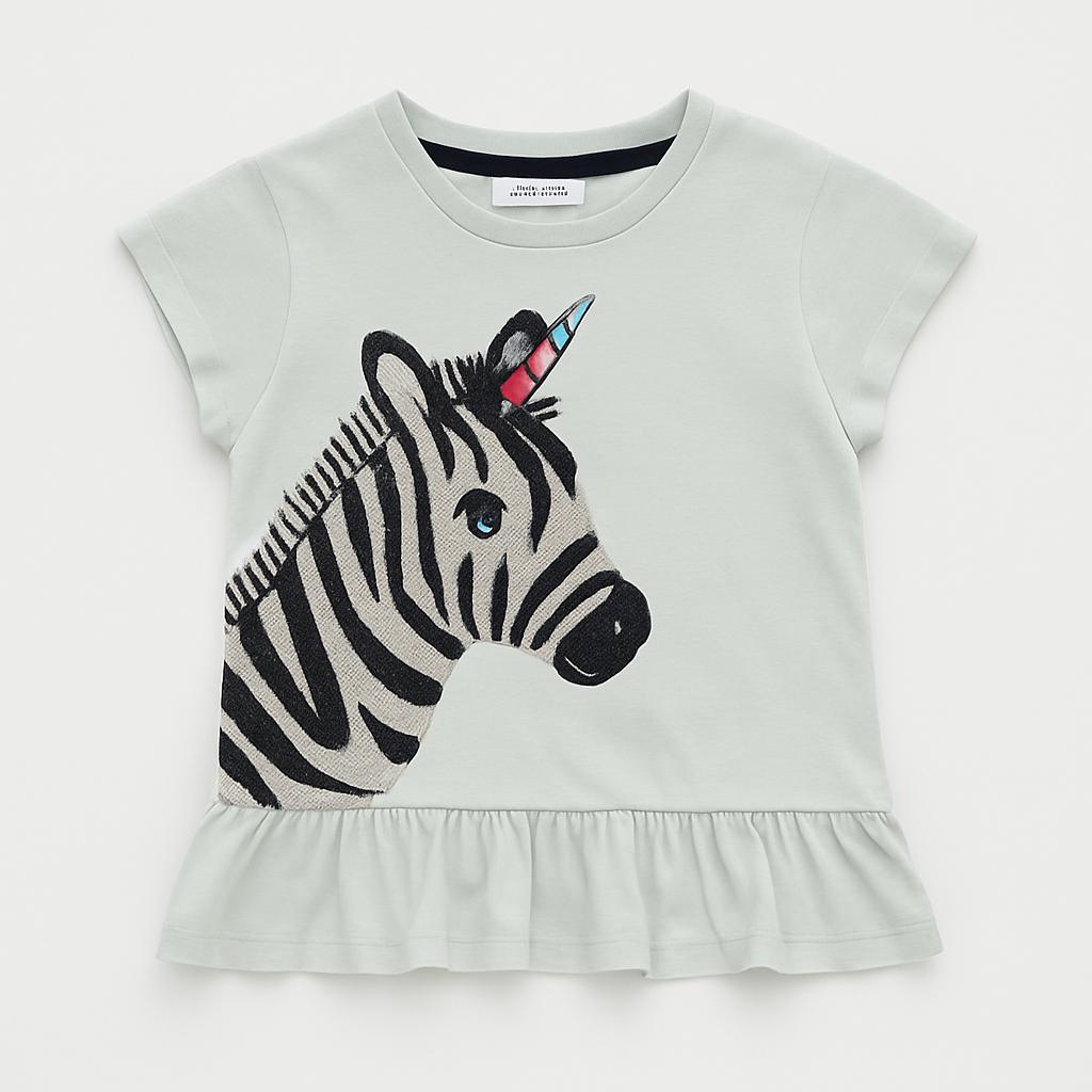 Scopri questa adorabile t-shirt usata, perfetta per le piccole amanti degli animali! Realizzata in morbido cotone, presenta un grazioso design con una simpatica zebra glitterata, dotata di un elegante corno colorato. Il taglio a balze rende il capo particolarmente frizzante e giocoso, ideale per ogni occasione casual o per un pomeriggio di giochi. Anche se è un pezzo usato, si presenta in ottime condizioni e conferisce un tocco di originalità al guardaroba delle piccole fashioniste. Non lasciartela scappare!