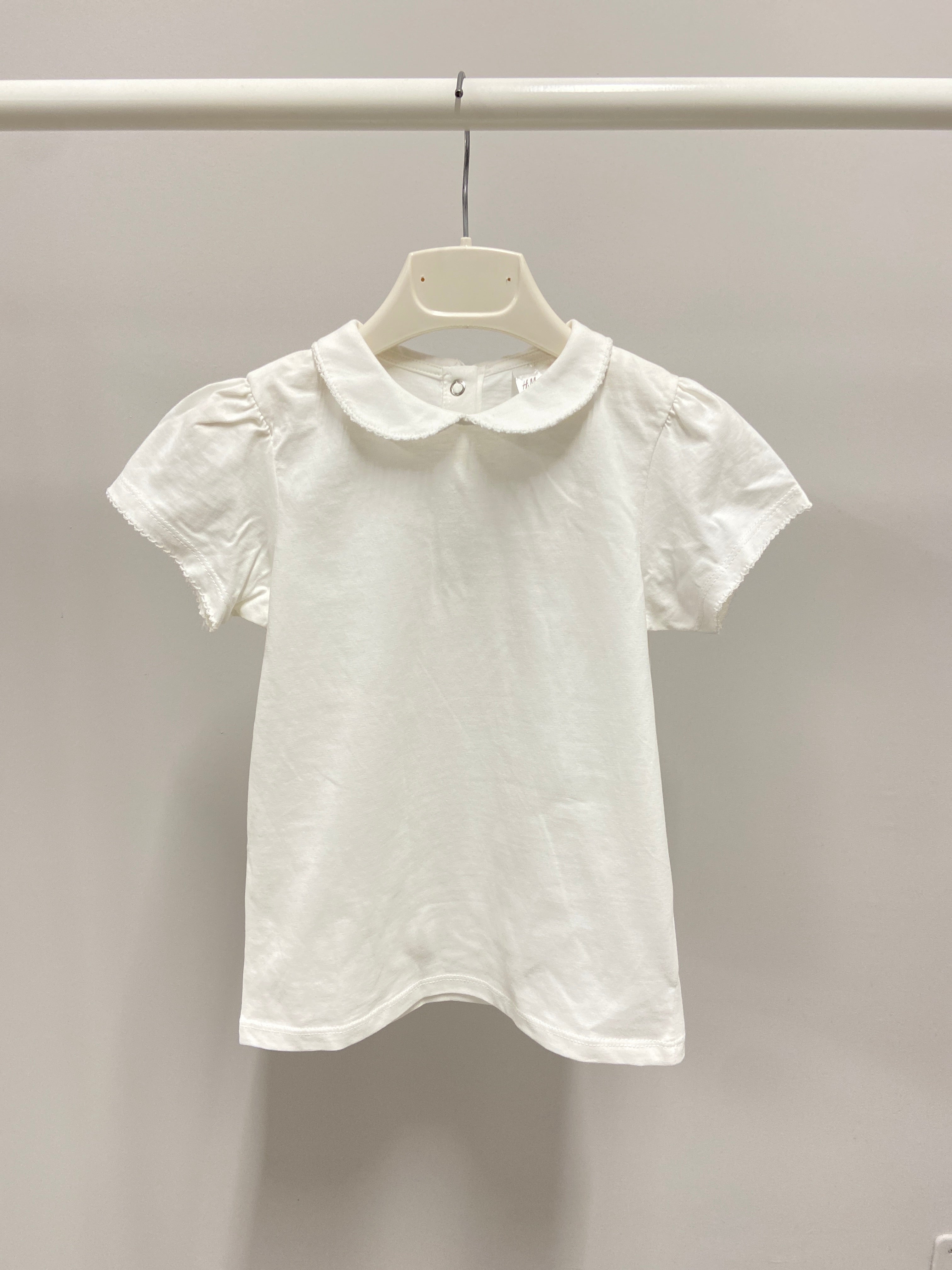 Questa adorabile t-shirt bianca è un’aggiunta incantevole al guardaroba della tua piccola! Realizzata in morbido cotone, presenta un delicato colletto che aggiunge un tocco classico e raffinato. Le maniche corte e leggermente voluminose donano un aspetto giocoso e femminile, perfetto per ogni occasione, dalle feste ai giochi al parco. Sebbene sia un capo usato, si presenta in ottime condizioni, pronta per essere indossata. Un pezzo versatile che può essere abbinato a gonne, jeans o pantaloni, per un look sempre elegante e comodo!