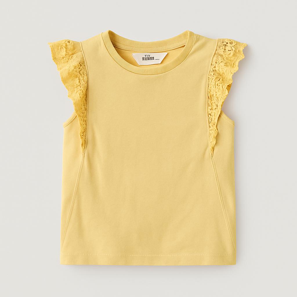 Questa deliziosa canottiera gialla è un vero colpo di sole nel guardaroba delle piccole! Realizzata in morbido cotone, offre comfort e freschezza. Le maniche con dettagli in pizzo aggiungono un tocco di eleganza giocosa, perfetta per le giornate estive. Nonostante sia usata, si presenta in ottime condizioni, pronta per essere indossata in avventure all'aria aperta o per momenti speciali. Un capo versatile che farà battere il cuore della tua bimba!