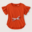 Questa adorabile maglietta arancione di marca Perugia è perfetta per dare un tocco di vivacità al guardaroba della tua piccola! Realizzata in un morbido tessuto, presenta un design elegante con maniche a campana che la rendono unica e alla moda. La coulisse in vita aggiunge un elemento divertente e permette di personalizzare il fit. Questo capo usato è in ottime condizioni e ideale per qualsiasi occasione, da un pomeriggio di giochi a una festa tra amici. Un pezzo versatile che non può mancare nel look delle piccole trendy!