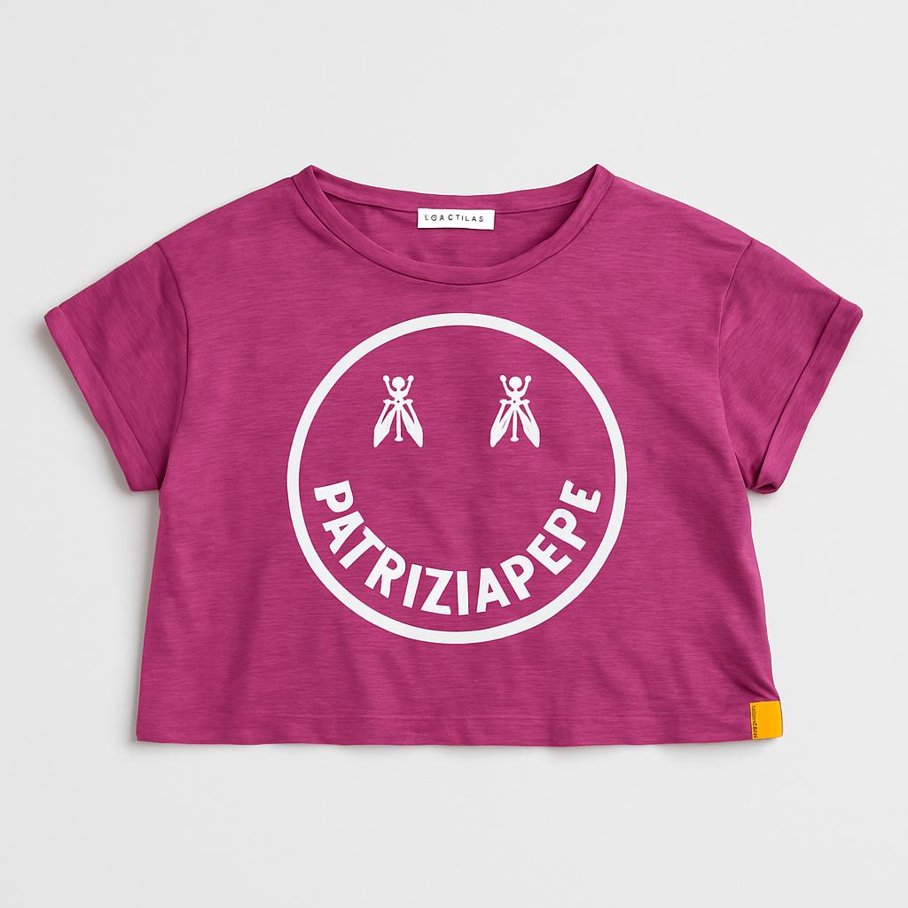 Questa simpatica t-shirt di Patrizia Pepe è un vero must-have per le piccole fashioniste! Realizzata in un morbido tessuto, presenta un vivace colore magenta, perfetto per portare un tocco di allegria nel guardaroba. Sul fronte, il grande logo circolare con due deliziose figure rende questo capo particolarmente giocoso e originale.